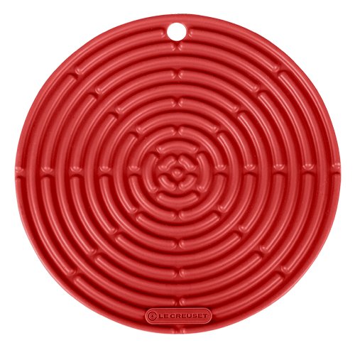 Like much of the Le Creuset line, these dishwasher safe round silicone hot pads have multiple uses. Covered with ridges they make excellent trivets for resting hot pots and pans on while allowing for air flow. The ridges also make these perfect to set eggs on so they don't roll off the counter. They are firm enough to use as a fan when a little air movement would come in handy. Combined with the ridges, they are flexible enough for opening jars and bending/gripping around medium to large handles.