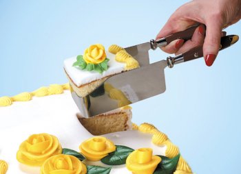 I WAS GIVEN THIS CAKE CUTTER AS A GIFT AND IT REALLY WORKS GREAT. WHEN YOU ARE HURRYING TO CUT A LOT OF CAKE FOR GUESTS IT GOES SO MUCH FASTER. I HAVE SINCE HAD PEOPLE ASK ME WHERE I GOT IT AND HAVE BOUGHT IT FOR FRIENDS.