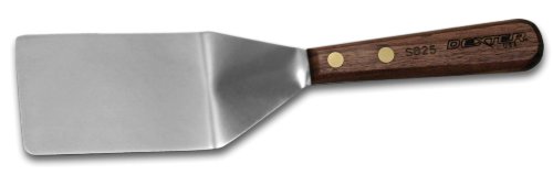 This pancake turner is made of high quality stainless steel. It has an attractive and durable walnut handle. It's perfect for rigorous commercial or everyday household use. This turner, with its 4-by-2-1/2-inch size, easily lifts pancakes (or french toast, eggs, et cetera). Handle is secured to the tang with compression rivets. Traditional style; professional and timeless design. By Dexter-Russell. In combination with high grade materials, innovation and highly skilled craftsmen, Dexter-Russell makes tools and cutlery that are professional grade, professional tools and cutlery designed, built, and tested to be people friendly and kitchen tough. Their knives are sharp, right out of the box. Edges last longer and can be easily re-sharpened. The complete array of professional cutlery, tools, and accessories provides consistent, time-tested performance in the kitchen. The dexter edge, the right knife and solution since 1818.