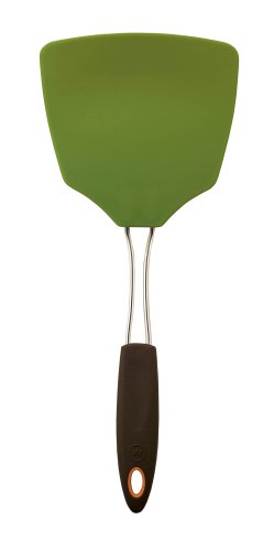 Mario Batali Large extra wide nylon flexible turner in pesto with soft grip handle. Contoured thumb groove fits comfortably in your hand. Nylon turner head is heat resistant to 400 degrees and is stain resistant. Extra wide turner perfect for panni, pan