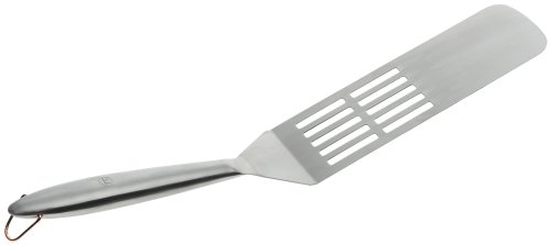 Outset QT12 Stella Stainless Steel Flexible Griddle Spatula For years I have been looking for spatula with a long blade, to use while grilling. Most grill spatulas have long handles, but small or average sized blades. With a 10.5" blade, this spatula rocks! It is perfect for fliping fish, grilled pizza dough, or 2-3 burgers at a time.