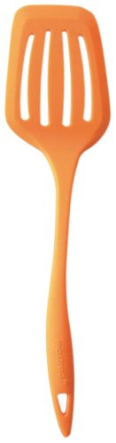 Like other have mentioned, this slotted spatula is excellent in that it is all one piece silicone and is easy to clean, however, it is very flexible; almost shockingly so. I cannot, for the life of me, think of a reason why a spatula need be so flexible. The last thing is that the edge of the spade is rather thick. It's not really good at all for turning delicate foods or getting underneath crab cakes and the like...Unfortunate.